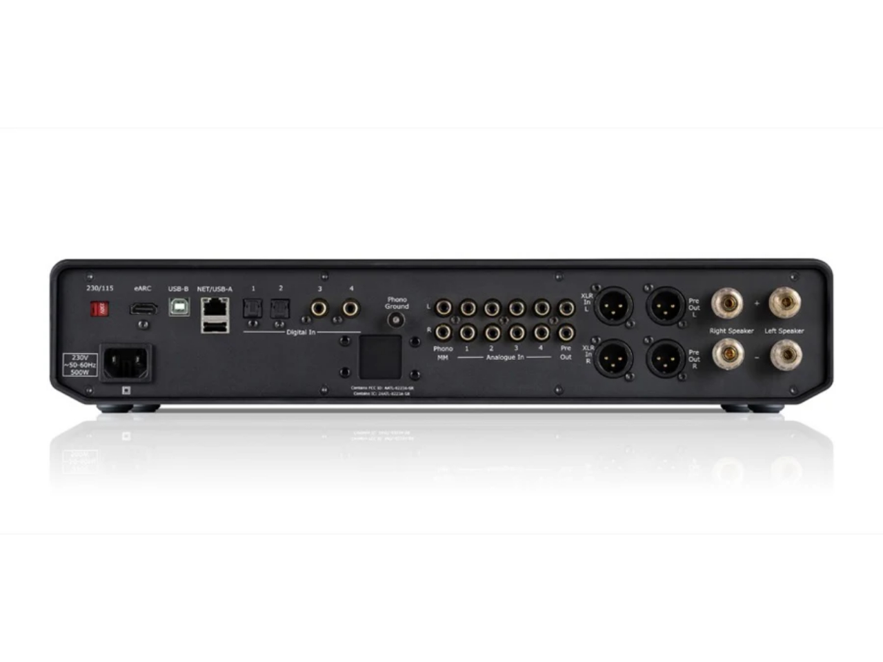 4x RCA, PHONO MM/MC, Pre out, XLR