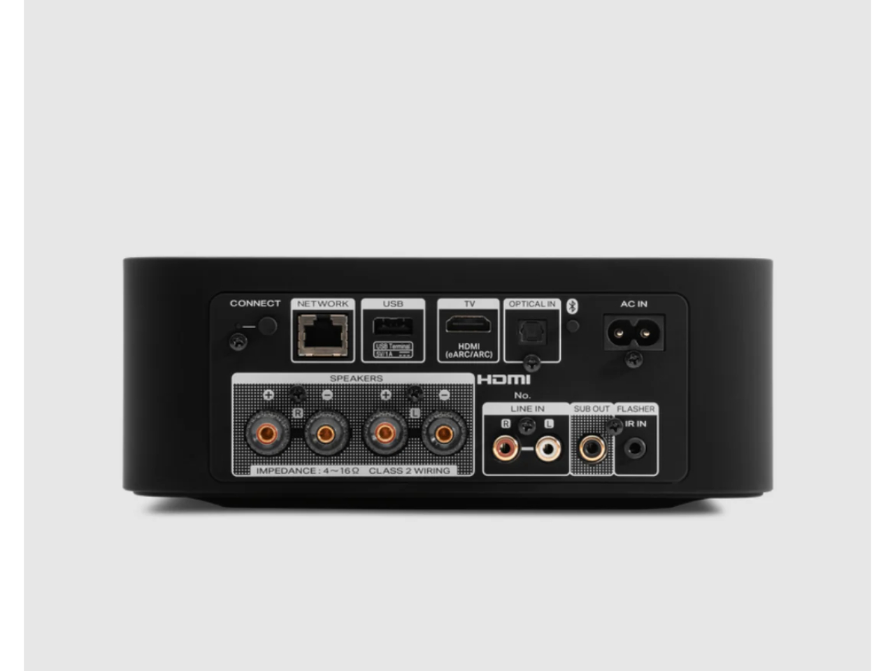 MODEL M1’s 100W per channel of high-quality, low-distortion amplification delivers pristine sound anywhere, while a subwoofer output delivers room-filling scale in larger spaces.